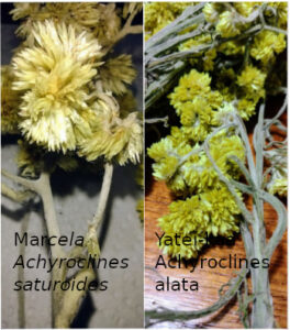 Ambas son género Achyroclines, la marcela es saturoides y el yatei kaa es alata.